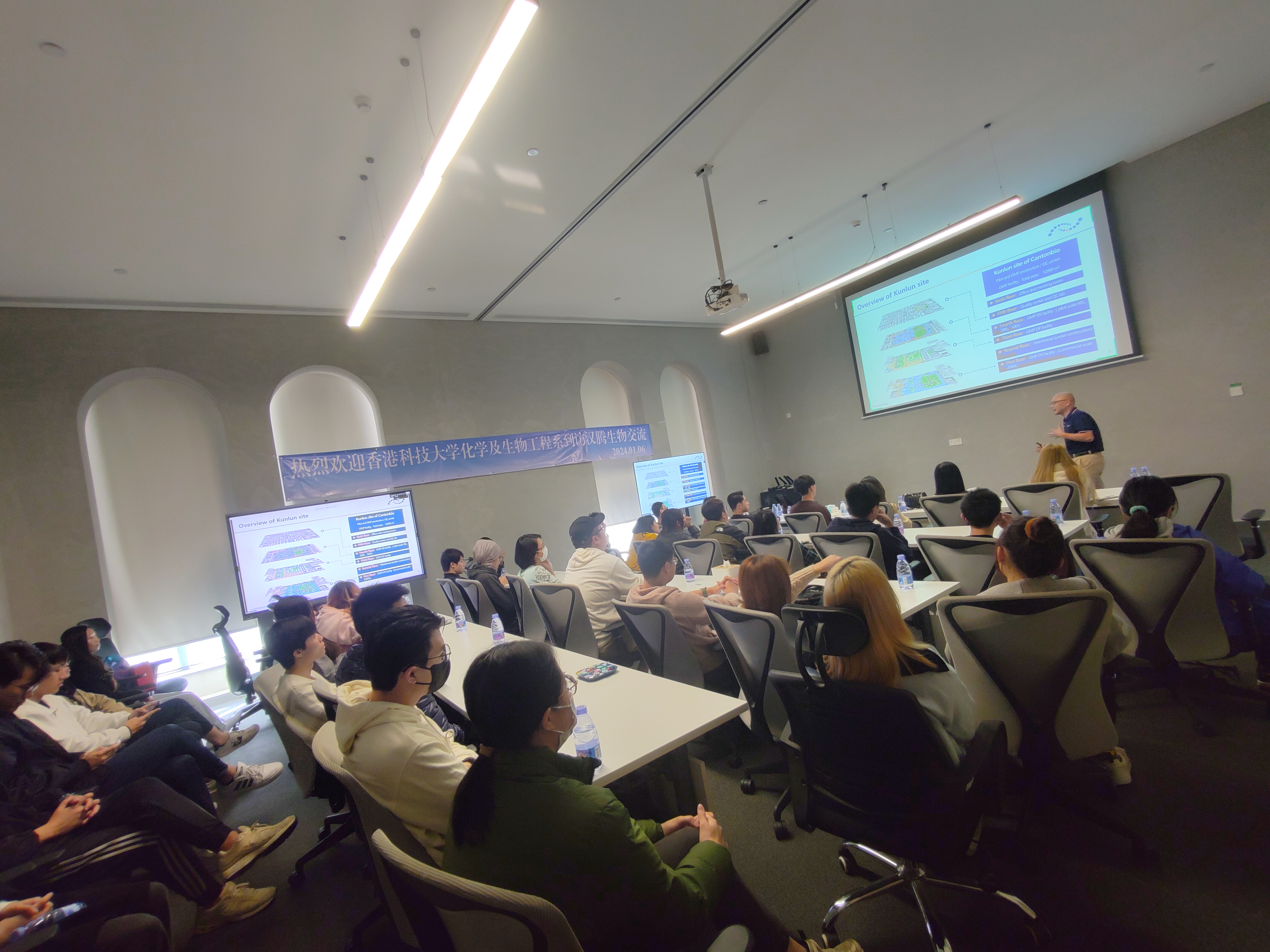 2024年1月5-6日,香港科技大學(xué)劉元帥教授帶領(lǐng)40多名來(lái)自化學(xué)與生物工程系的師生到訪漢騰生物(Canton Biologics), 副總裁張春華先生代表漢騰高管團(tuán)隊(duì)熱情接待了來(lái)訪嘉賓并作歡迎致辭。這是繼2023年10月漢騰生物CEO沈?yàn)t博士在香港科大舉行專題演講交流后,雙方的又一次深度的合作互動(dòng)和探討。
