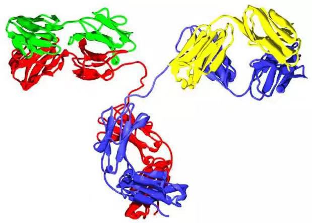 抗體是一種高分子球狀血液蛋白質(zhì),重量約為150kDa。由于在部分氨基酸殘基中含有糖鏈,抗體也是一種糖蛋白。能發(fā)揮功能的基本單位是一個(gè)免疫球蛋白單體。在分泌形態(tài)的抗體中包括:二聚體IgA、真骨附類(lèi)魚(yú)的四聚體IgM以及哺乳動(dòng)物的五聚體IgM。