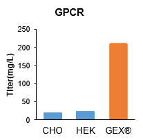 例如,在表達G 蛋白偶聯(lián)受體 GPCR 的胞外結構域時,GEX® 細胞系的表達量相比傳統(tǒng)的 CHO-K1 細胞系可提升10倍之多。