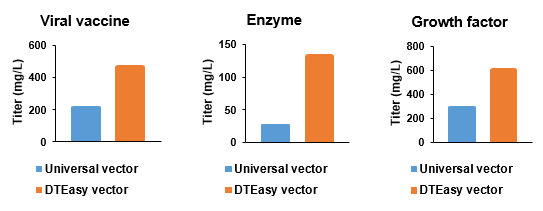 通過以上組合優(yōu)化設計,DTEasy平臺在難表達蛋白的合成效率和產量上取得顯著提升,滿足了客戶高標準的表達需求。