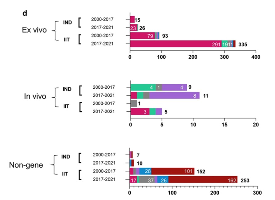 據(jù)公開數(shù)據(jù)顯示,全球CGT大多數(shù)處于早期研發(fā)階段(包括臨床前研究和臨床Ⅰ期),CGT市場處于萌芽期。我國開展的CGT臨床試驗數(shù)量目前位居全球第二,臨床開發(fā)熱情高漲。為進一步拓展這個領(lǐng)域,國家從十三五到十四五期間出臺了很多政策與CGT相關(guān)的治療原則,旨在加快產(chǎn)業(yè)發(fā)展。