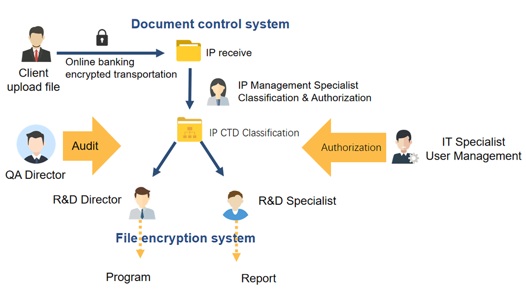 The safe custody and controlled use of the client's key technical data and the internal documents converted from themensuring that they are not leaked to any unrelated individuals