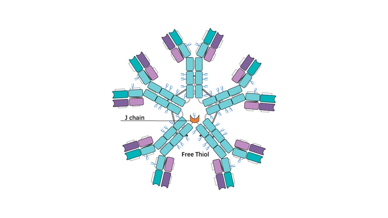 在此之前漢騰分析團(tuán)隊(duì)對(duì)已對(duì)IgM的聚集體形式、二硫鍵、游離巰基、氨基酸序列、翻譯后修飾、N-糖基化位點(diǎn)、假病毒中和活性等進(jìn)行in-silico預(yù)測(cè)和全面的表征驗(yàn)證工作,獲得其五聚體含J鏈的構(gòu)型、98對(duì)二硫鍵、2個(gè)游離巰基、51個(gè)N-糖位點(diǎn)、各位點(diǎn)優(yōu)勢(shì)糖型和空間功能的全面屬性揭示。大大加快了IgM在生物制藥領(lǐng)域的應(yīng)用進(jìn)度。